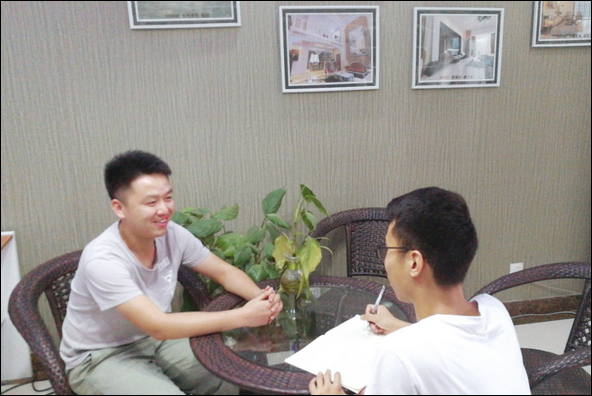 6月1日,365官网大学生创客联盟一行两人实地采访了365官网优秀创业校友李浩。李浩为365官网2008级广告设计学专业学生,现任滁州市雅居装饰工程有限公司总经理。
