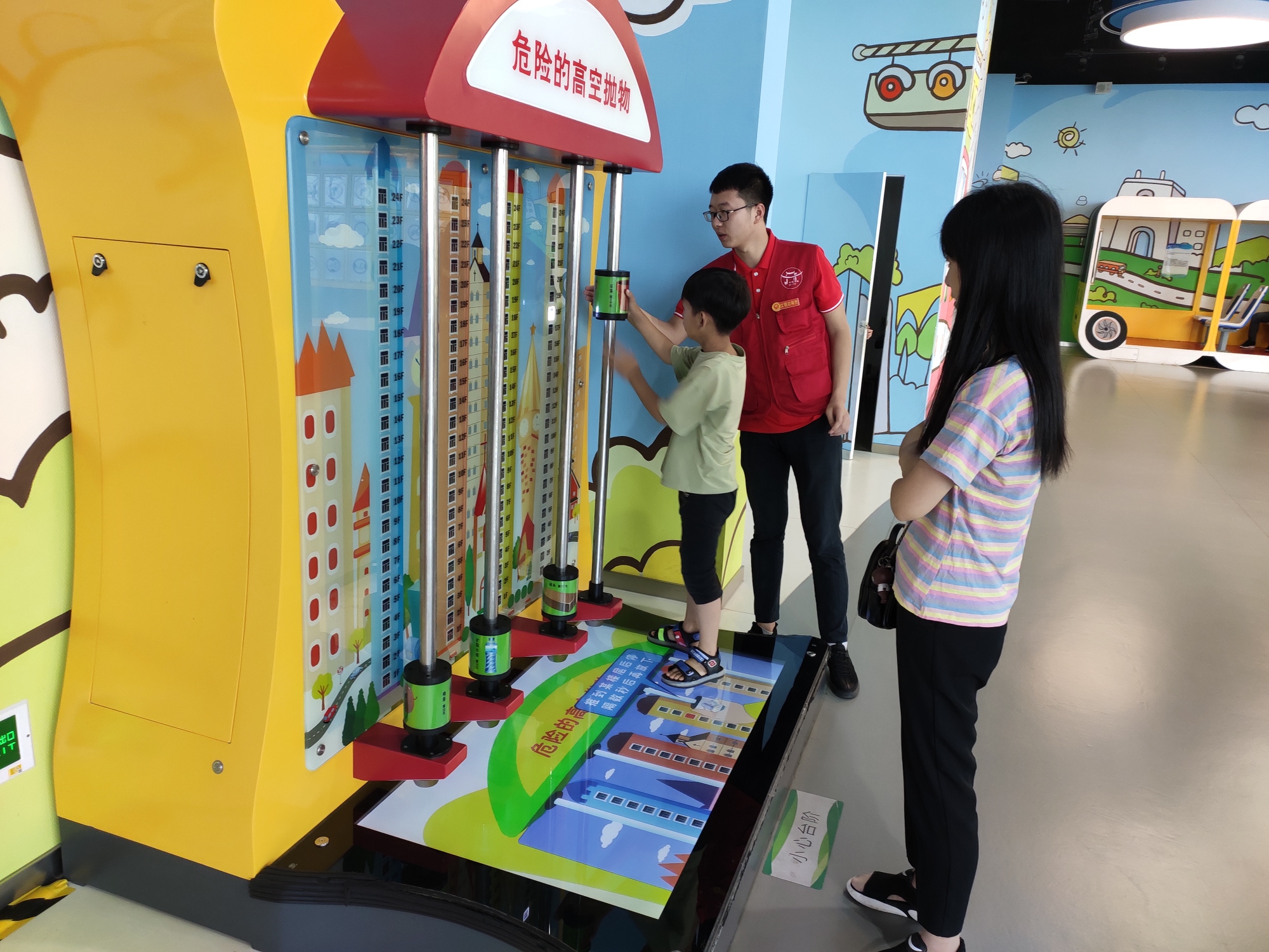 志愿者为小孩子讲解高空抛物的危险性并引导小孩子实际动手操作切实体验高空抛物的危害,增强小孩子的安全意识。 中国青年网通讯员 崔晴雨 摄