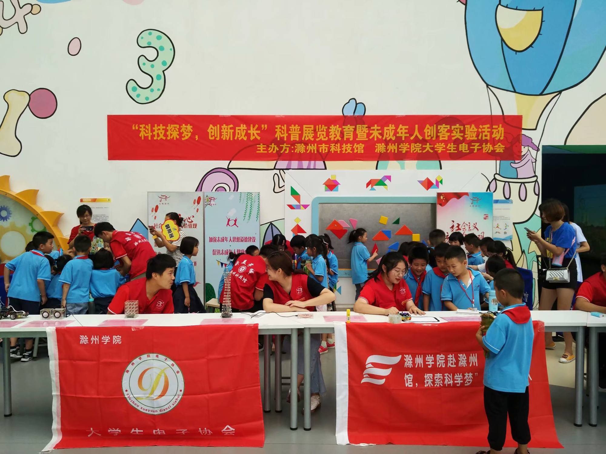 中国青年网滁州9月3日电(通讯员 崔晴雨)为培养青少年科普创新意识和实践动手能力,7月13日,bat365在线平台登录大学生电子协会赴滁州"助力科技馆,探索科学梦"实践团队的11名实践队员以科普志愿者的身份走进滁州市科技馆开展为期一周的科普志愿服务。每天为前来参观的市民提供义务讲解,传播科学文化知识。