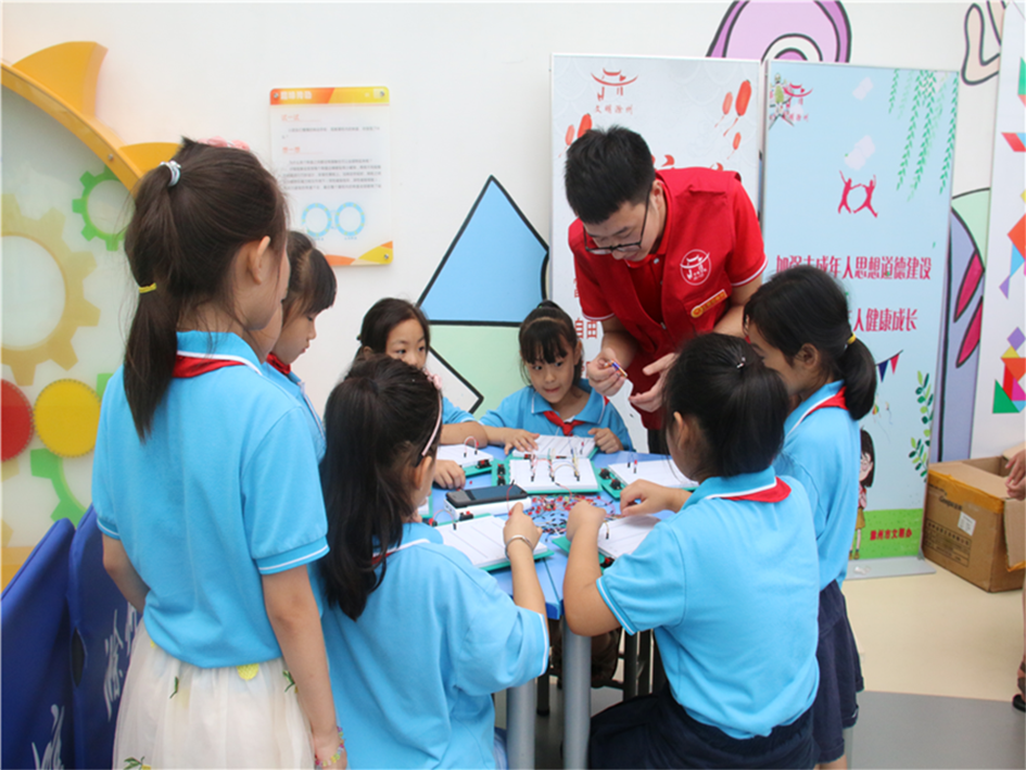 实践团队与市科技馆联合开展"科技探梦,创新成长"科普展览教育暨未成年人创客实验活动。中国青年网通讯员 崔晴雨 摄